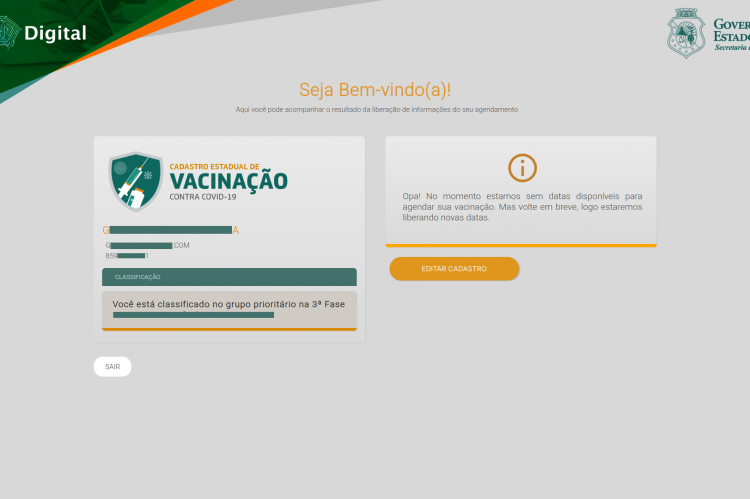 Se você é grávida e quer agendar a vacina, basta procurar o botão editar cadastro conferir data de nascimento, inserir sua comorbidades e escolher o grupo prioritário grávidas só assim você conseguirá sua vaga. Será contactado por sms pelo número 2424 com mais indicações. Agendamento para o dia 05/05/2021 o agendamento para 05/05/2021 entre 09h e 12h é exclusivo para vacina de gripe (h1n1) para crianças de 6 meses a menores de 6 anos / gestantes / puérperas (45) dias. Os agendamentos ficarão disponíveis conforme a quantidade de doses recebidas. Agendamento para vacina contra covid em fortaleza;